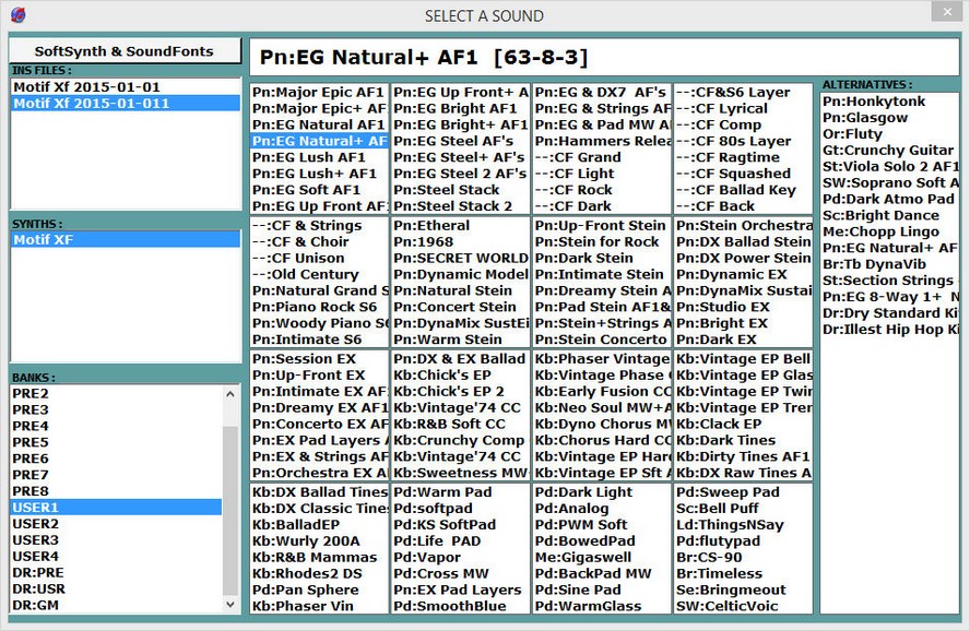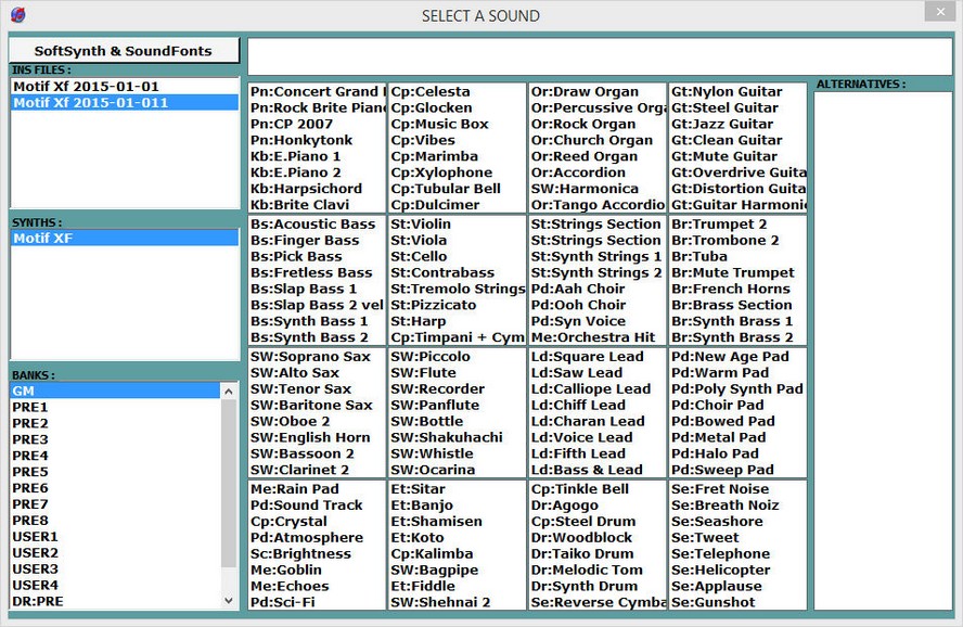 Vous pouvez si vous n'avez pas de fichier .ins sélectionner vos voices user dans la partie Sound Edit en saisissant les MSB/LSB/PC.