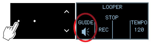 Appuyez sur Looper et sur l'écran sélectionnez guide ou clic :