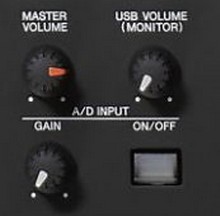 - Volume permet d'ajuster le volume de sortie de l'AD input, ce réglage est indépendant du gain sur le bouton rotatif qui est le gain d'entrée de l'AD input.