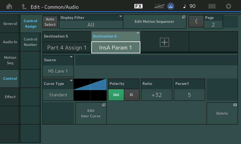 - On dispose de 16 destinations contrôleurs par part (versus 6 sur la série Motif) avec également des réglages de courbes et également de 16 assignations common par performance.