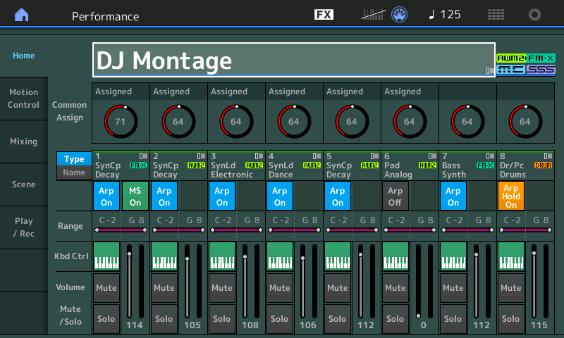 Le Montage n'est pas un Motif, le MODX n'est pas un MoXF, il n'y a pas de mode voice, performance, song, master ...., tout est performance dans le Montage e tle MODX, la compatibilité avec la série Motif n'est pas complète.