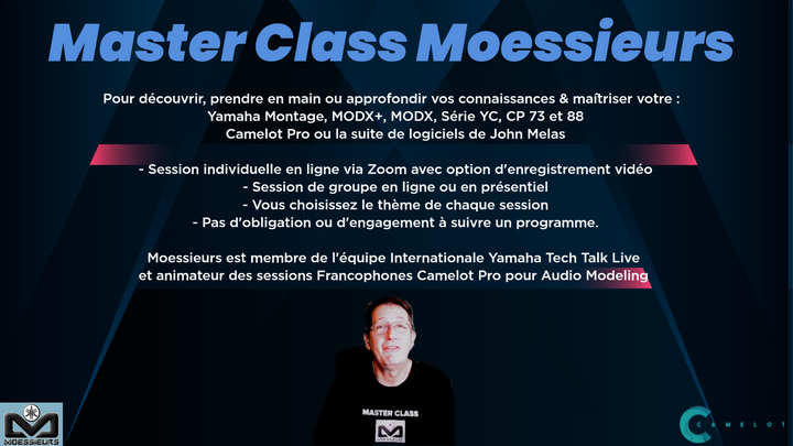 🎹 Utilisez tout le potentiel de votre Synthétiseur ou Clavier de Scène Yamaha, Camelot Pro ou John Melas Softwares, réservez dès aujourd'hui votre place pour une Master Class Personnelle ou Entreprise Moessieurs!