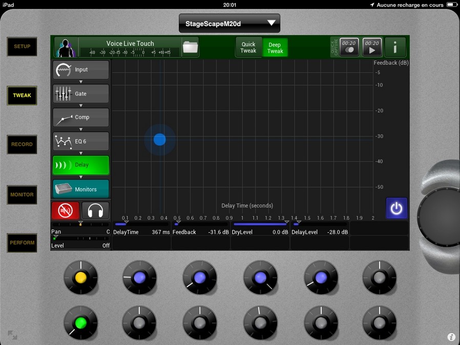 On retrouve au en bout de chaine DSP une fenêtre delayavec des réglages similaires pour les deux premiers encodeurs à l'analog delay en vue Deep Tweak :