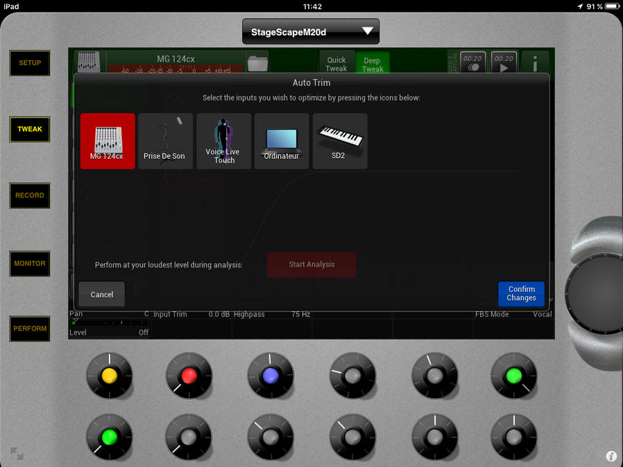 - Prenez soin de faire un auto trim tout en laissant le trim tracking actif, ceci par contre permettra d'avoir un niveau d'entré bien régulé :
