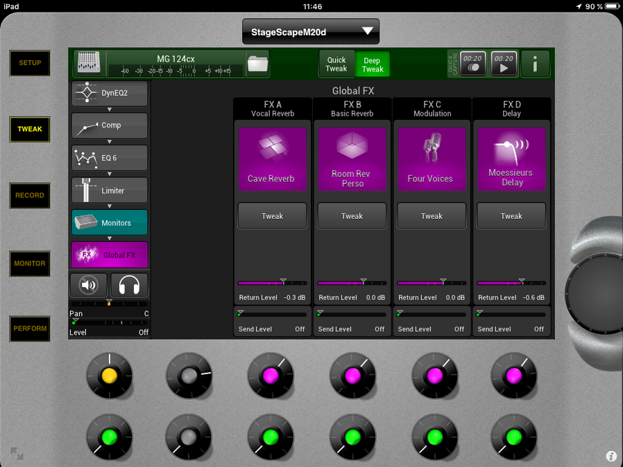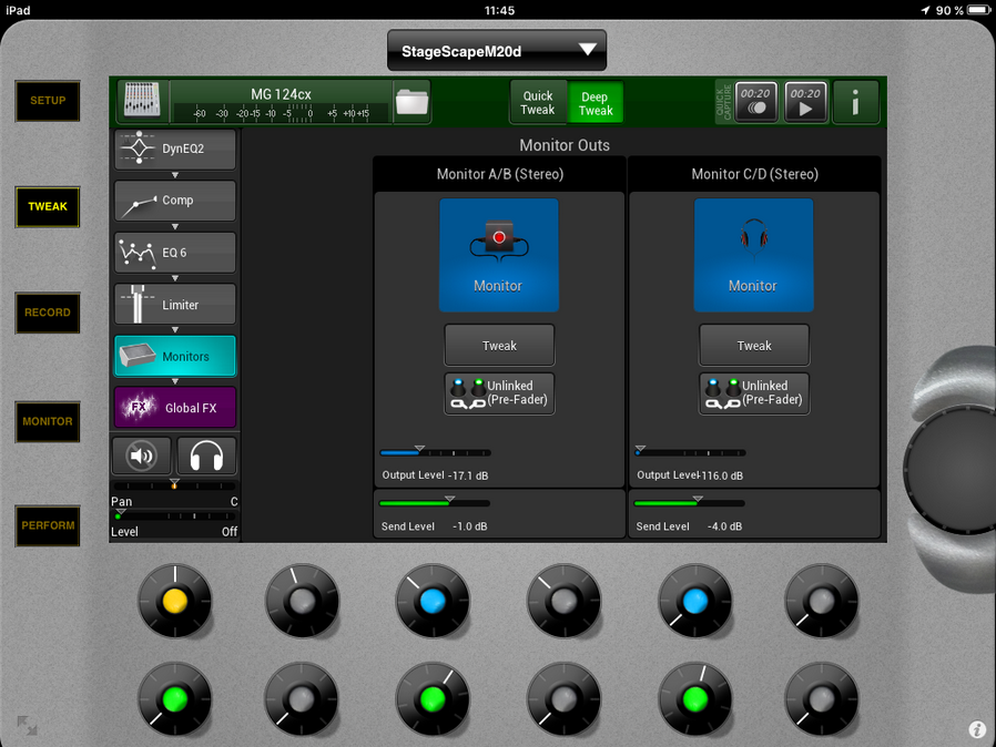 A noter que vous avez également via le pavé Tweak pour chaque moniteur des réglages pour la sortie vers ces derniers afin d'ajuster les réglages entre diverses écoutes :