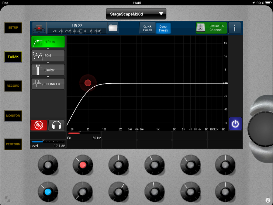Commençons par l'imput, le High Pass filter et le Feedback suppressor sont activés :