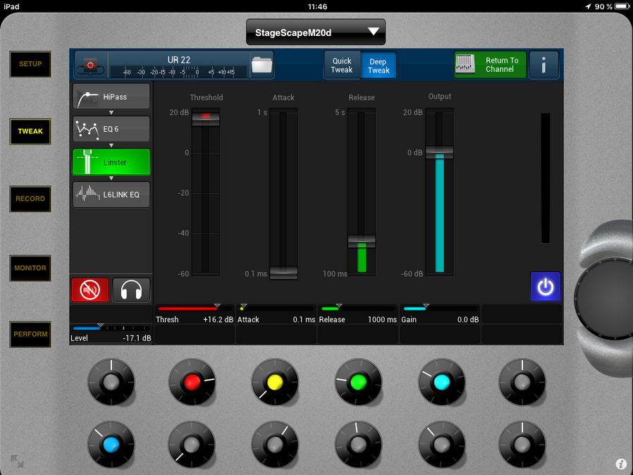 - Le limiteur, lui on le laisse actif, il va éviter des crêtes sur vos solo de lead endiablés ajustez les réglages si nécessaire :