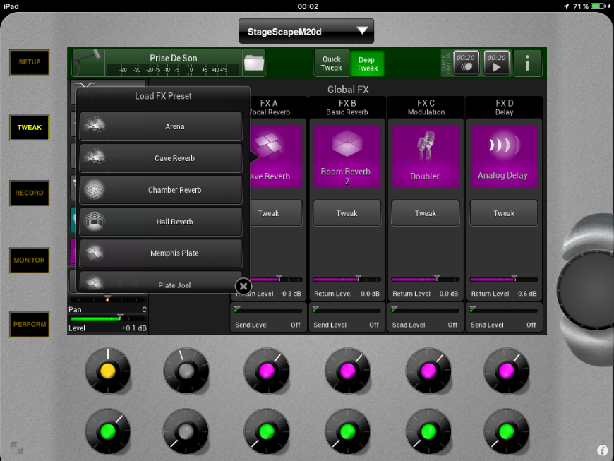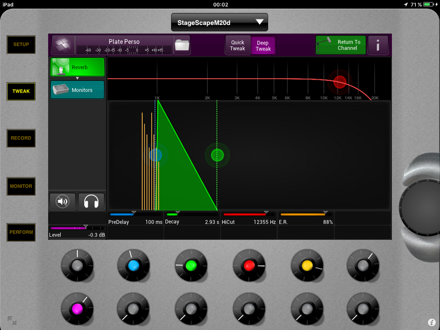 Les effets de la Line 6 StageScape M20d : réglage en Deep Tweak du FX A : Vocal Reverb