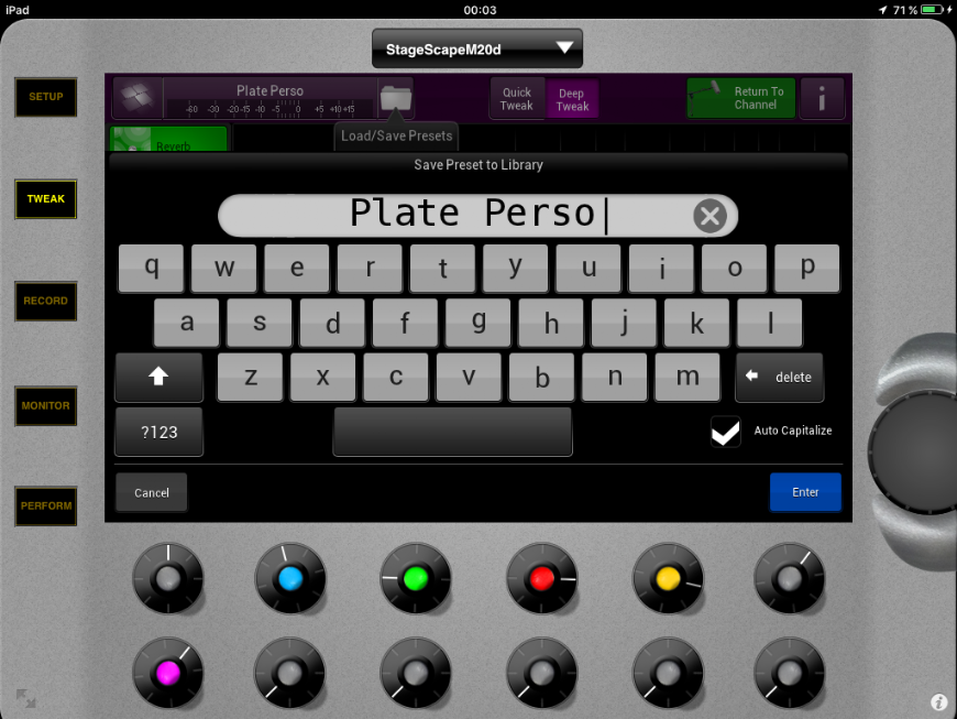 Après avoir cliqué sur "save as" le pavé tactile s'affiche, tapez le nom de votre réglage user et cliquez sur "Enter" en bas à droite :