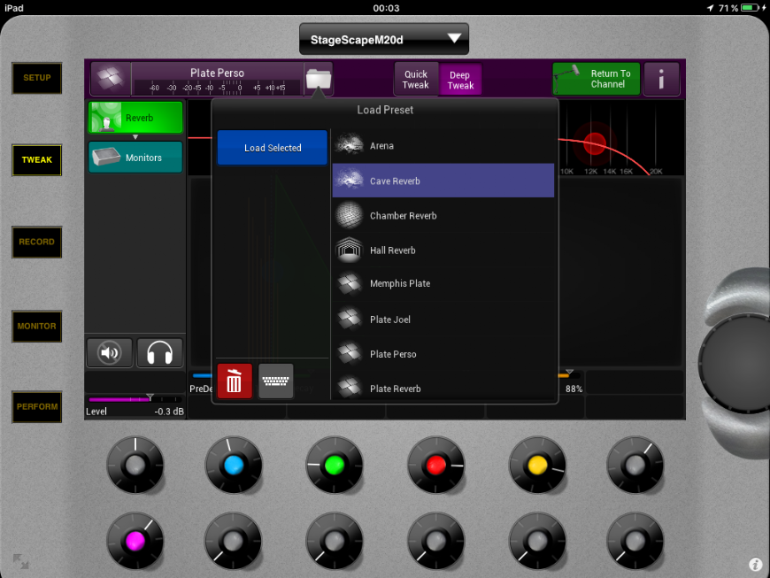 Vous trouverez sur cette pages les explications relatives à l'utilisation et aux réglages des Reverb Vocale de la StageScape M20d en Deep Tweak.