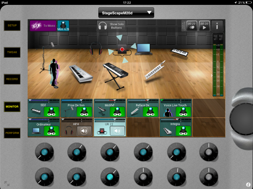 Vous trouverez sur cette page les explications pour envoyer les effets vers les sorties Monitor de la StageScape M20d.