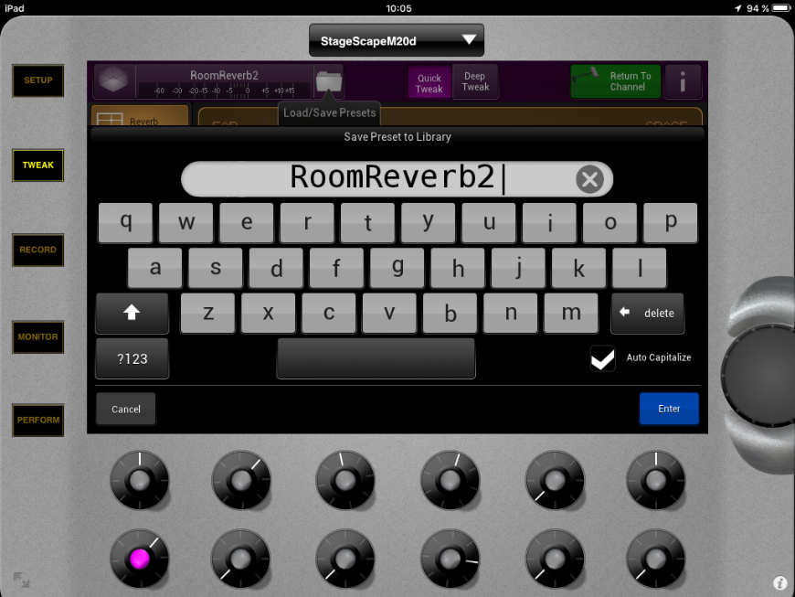 Les effets de la Line 6 StageScape M20d : réglage en quick Tweak du FX B : Basic Reverb