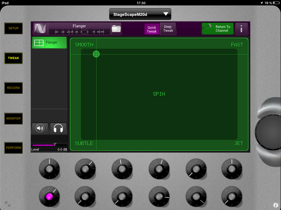 Les effets de la Line 6 StageScape M20d : réglage en quick Tweak des FX C : Modulations