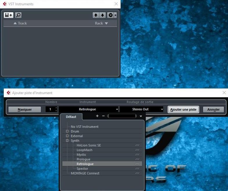 - Sélectionnez votre VSTi dans la Categorie Synth, pour notre exemple dans la traduction Moessieurs, Retrologue :