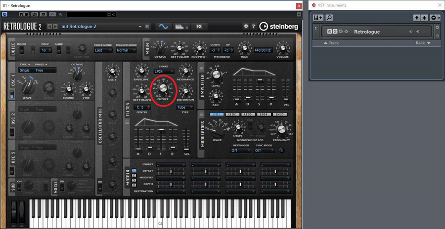 Vérifiez que les mouvements des boutons rotatifs du Montage se répercutent bien sur le VSTi.
