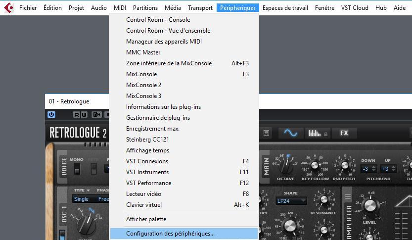 - Sélectionnez Periphériques > VST Instruments :