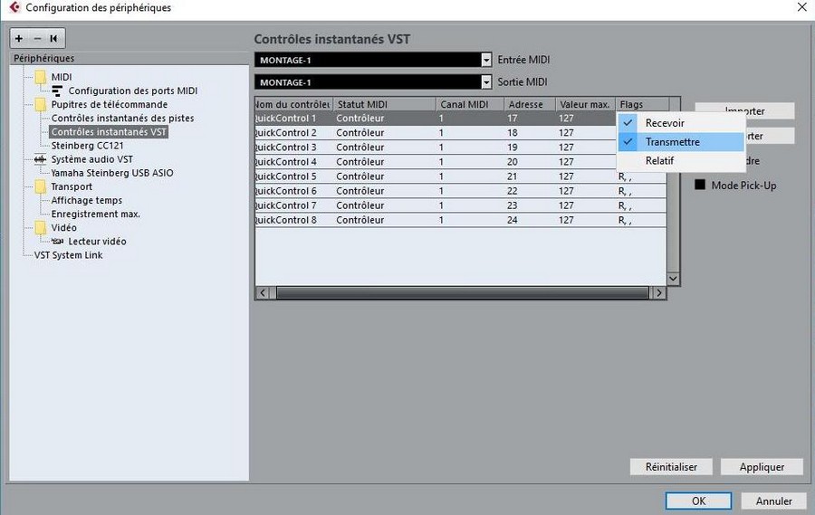 - Pour se faire allez dans : Périphériques > Configuration des périphériques > Contrôles Instantanés VST :