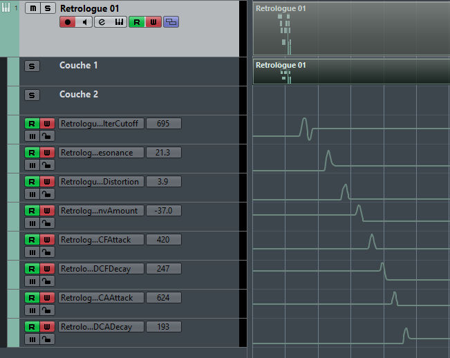 - Sur la piste instrument, activez l'automation avec les symboles R et W (Read & Write) :