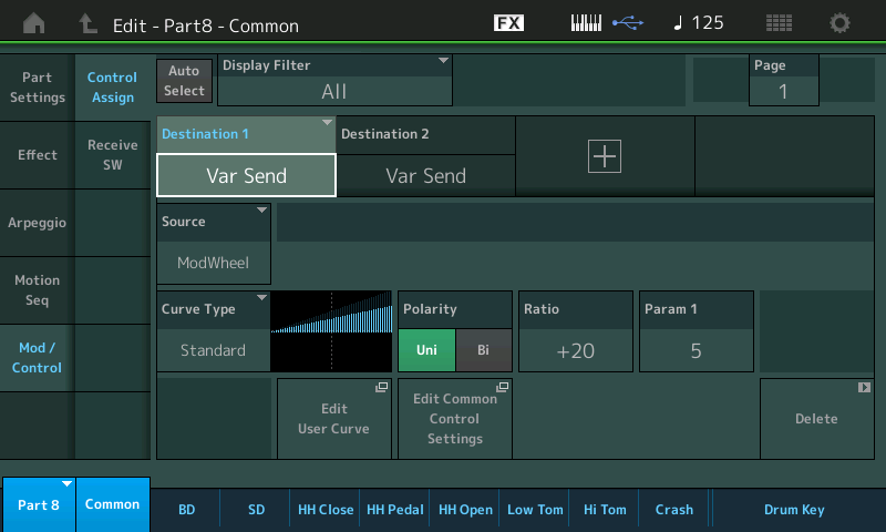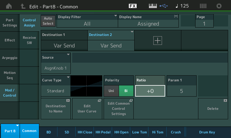- Notez que dans cet exemple, le variation Send peut être aussi géré via la molette de modulation, vous pouvez toujours récupérer ainsi un contrôleur du Montage pour remplacer un assignable knob en rajoutant une source ou en modifant ses données :
