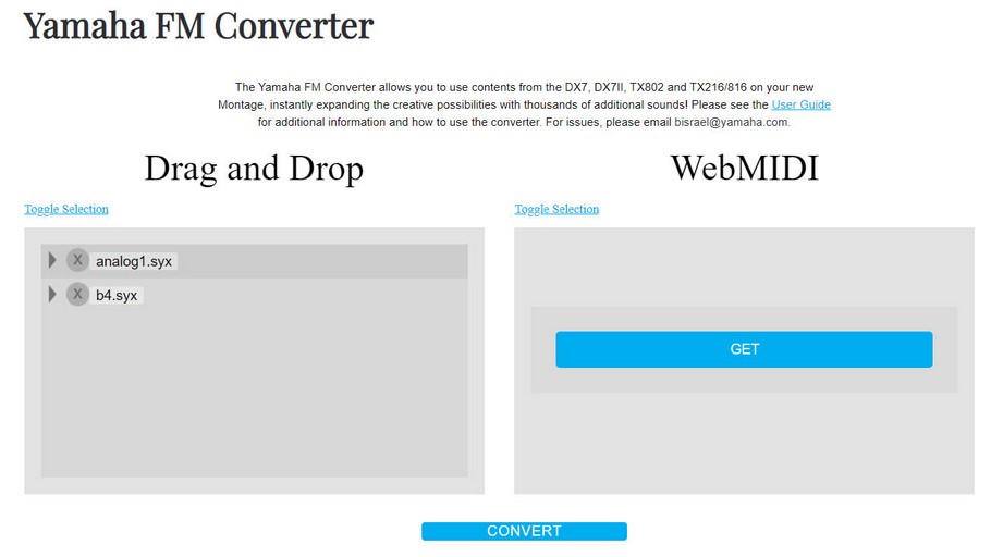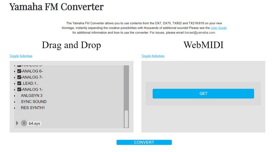 Il vous permet de convertir des fichiers sysex ou DXC du DX7, DX7s et DX7 II FD, sysex du TX802 ou TX816 en format library compatible avec le Montage ou le MODX.