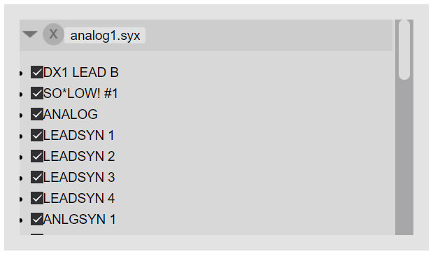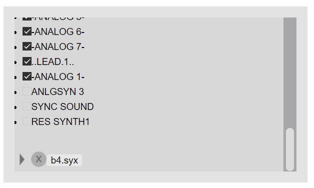 Il vous suffit d'ouvrir un dossier avec vos sysex ou vos DXC sur votre ordinateur et de faire un glisser/déposer vers la partie gauche de la fenêtre de FM Converter, vous pouvez mettre plusieurs fichiers et ouvrir le "listing" de chaque fichier pour sélectionner les sons de votre choix dans chaque fichier :