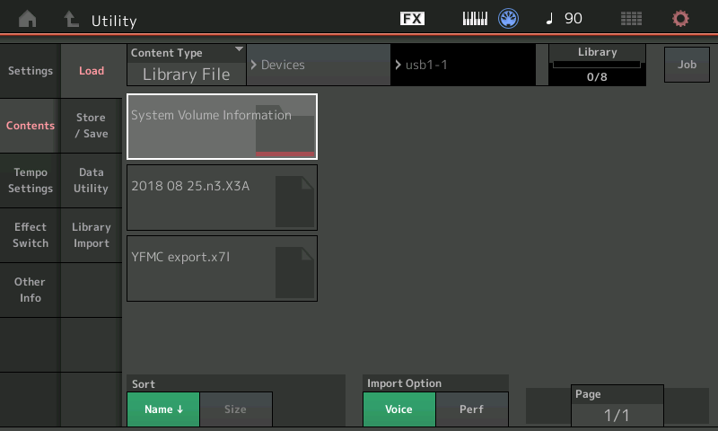 "Contents" > "Load", dans File Type sélectionnez "Library File", vous verrez alors votre fichier "YFMC export.X7L" à l'écran :