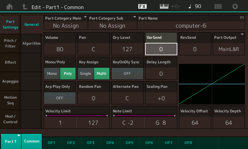 - Les System Send Reverb et Variation sont à zéro en Edit Part > Part Settings > General :