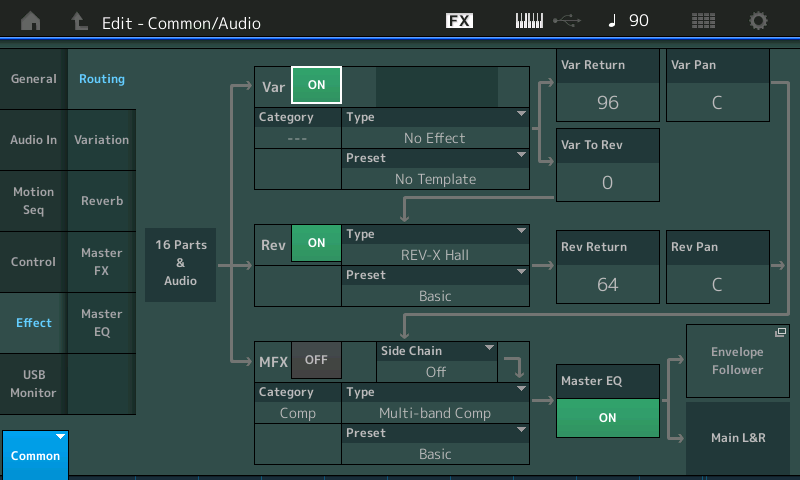 - D'ailleurs au niveau des effets System, seule la Reverb-X est assignée :