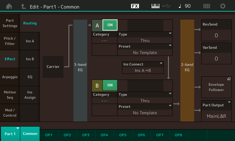 - Aucun effet d'insertion n'est sélectionné en Edit Part > Effect > Routing :