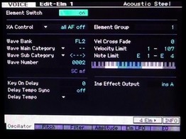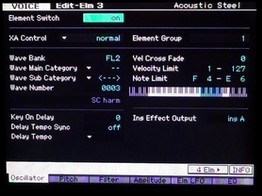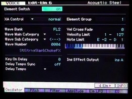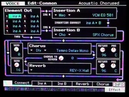 En ce qui concerne la gestion des effets, aucun chorus system n'est utilisé dans la banque, uniquement la reverb system et les effets sont travaillés en effet d'insertion du XF, évidement la guitare n'a pas été samplée avec des effets, ce qui vous permet de retravailler les effets, voire de créer de nouvelles voices simplement en utilisant d'autres effets.