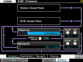 On gardera par contre toujours les effets d'insertions pour des voices qui utilisent des effets de type distorsion, wah, tec, lo-fi, flanger, phaser ....