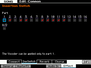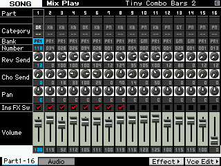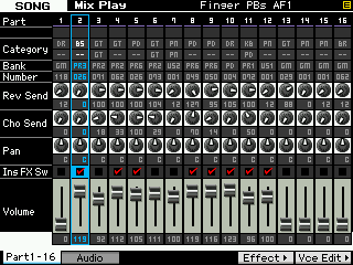 Afin de choisir, nous allons allez sur chaque part en Voice Edit (F6) et nous allons regarder quel types d'effets d'insertion chaque part (voice) utilise.