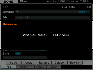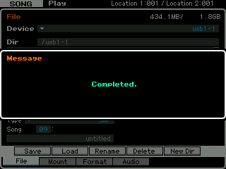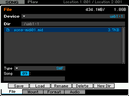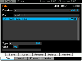 Pour se faire vous devez être en premier lieu en mode Song avant d'appuyer sur File pour explorer le contenu de la clef usb connectée au port usb to device de votre Motif XF dans laquelle vous avez mis vos ou votre séquence midi.