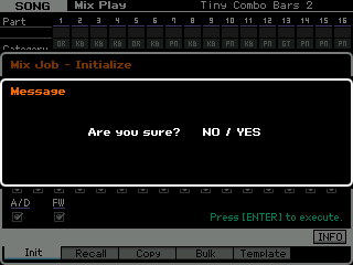 S'il n'y a qu'une seule donné de MSB-LSB-PC sur chaque piste et si vous ne travaillez votre séquence midi que sur votre Motif XF sans utiliser d'ordinateur vous pouvez effacer ces trois donnés, nous avons sauvé le mixing après avoir initialisé le Mixing panel en GM, la voice est en mémoire dans le mixing.