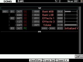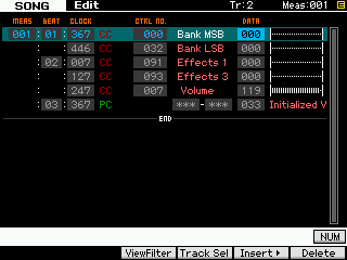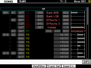 Si vous souhaitez conserver ce type de réglages, il est impératif de laisser toutes les donnés de control change de volume ou d'expression associés et surtout celle du début de la séquence.