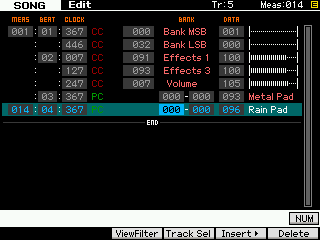 Néanmoins si vous disposez d'une pédale FC3, il est nettement préférable de refaire intégralement l'enregistrement des donnés de sustain en mode overdub, après avoir effacé les valeurs initiales.