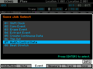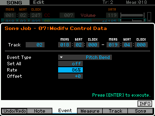 Si cela n'est pas suffisant on pourra modifier le "ratio" de variation des donnés de Pitch bend avec la fonction job, event, 07 Modify Control Data.