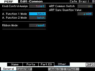 Rappel lorsqu'on a routé sa pédale foot Switch sur un des deux boutons AF l'effet d'une pédale FC5 Yamaha est toujours momentané, même si vous avez sélectionné "Latch" en réglage pour appuie manuel, il faut une pédale d'une autre marque avec fonction switch on/off pour pouvoir maintenir la fonction sans garder l'appuie.
