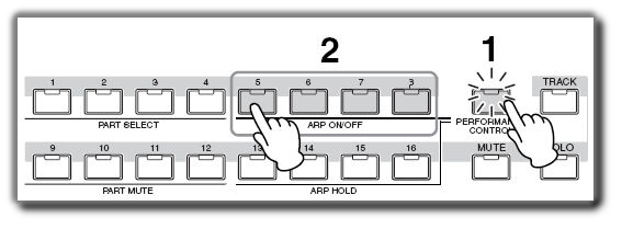 5 à 8 gèrent les arp on/off sur chacune des part, arrêter ou lancer la reproduction en arpège.