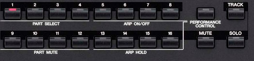 Arp Play Only est sur "on" sur la page Edit, Part1, F1 Voice, Sf1 Voice, ce réglage permet de ne pas entendre les instruments du kit de batterie quand le bouton arpeggio on/off est éteint.