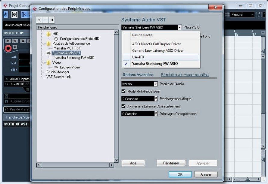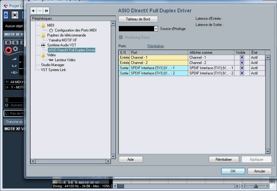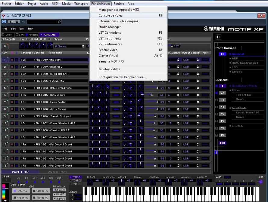 Didacticiel utilisation du VST Editor avec une carte son externe pour l'audio et l'usb du Motif XF pour les données midi :