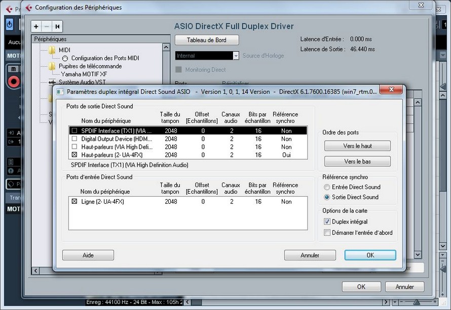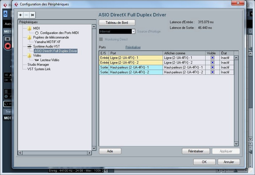 Ce didacticiel relate comment utiliser l'usb midi du Motif XF et enregistrer l'audio via une carte son externe, exemple ici avec une UA4-FX dans cubase AI 5.