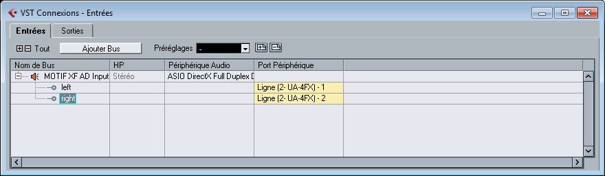 J'ai pris pour exemple ici, le pire de tous les cas, ou il faut assigner intégralement votre carte son dans cubase car ses bus audio ne sont pas visibles dans le VST Editor, c'est le cas n°1.