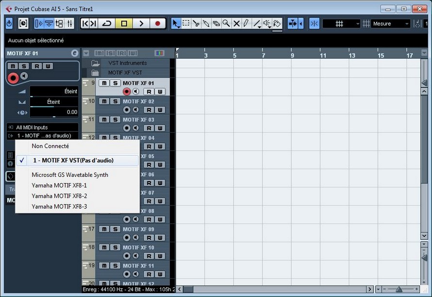 Vous pouvez enregistrer directement dans cubase vos données midi depuis le clavier de votre Motif XF.