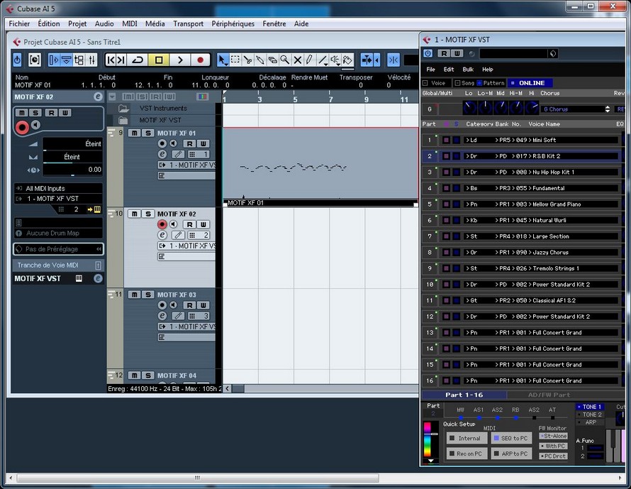 - enregistrer dans le séquenceur du Motif XF les données midi tout en utilisant le VST editor et Cubase pour ses effets.