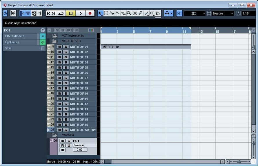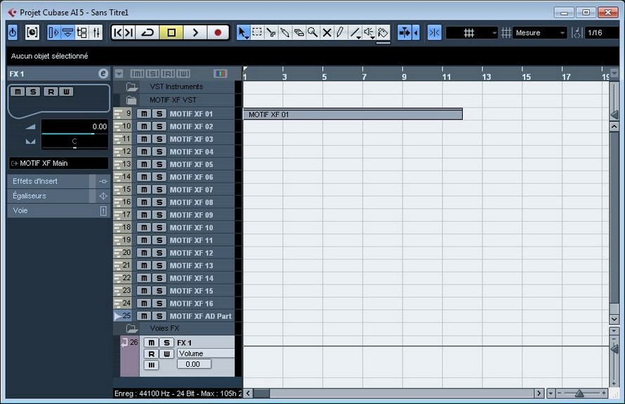 Nous allons commencer par ouvrir un projet Cubase "Motif XF with VST Editor".