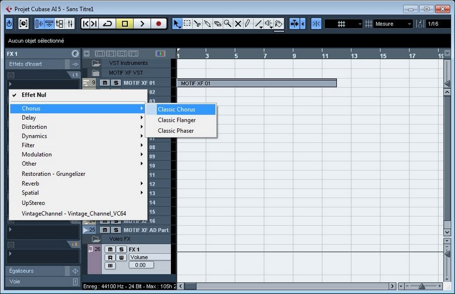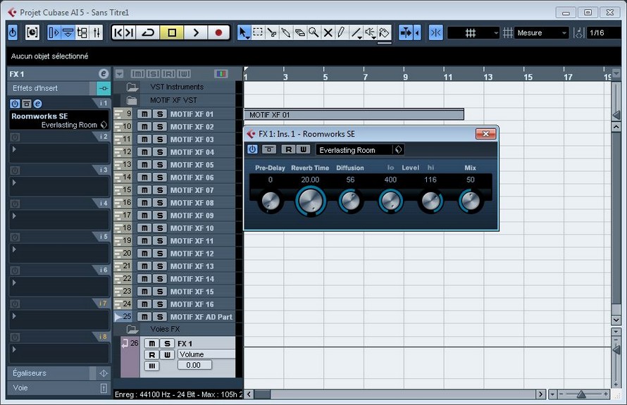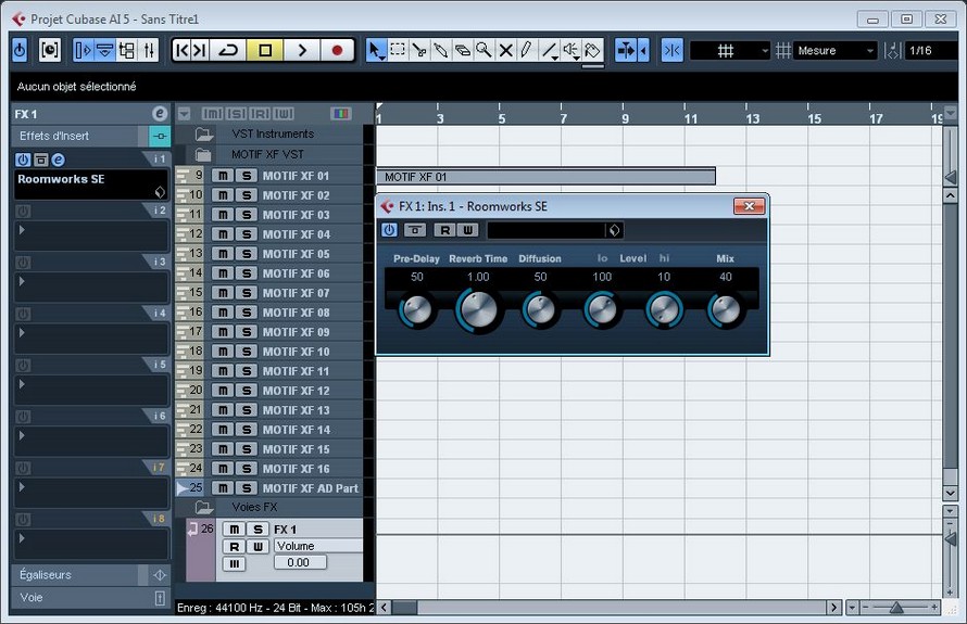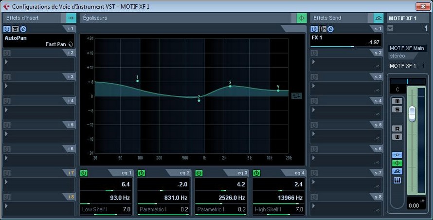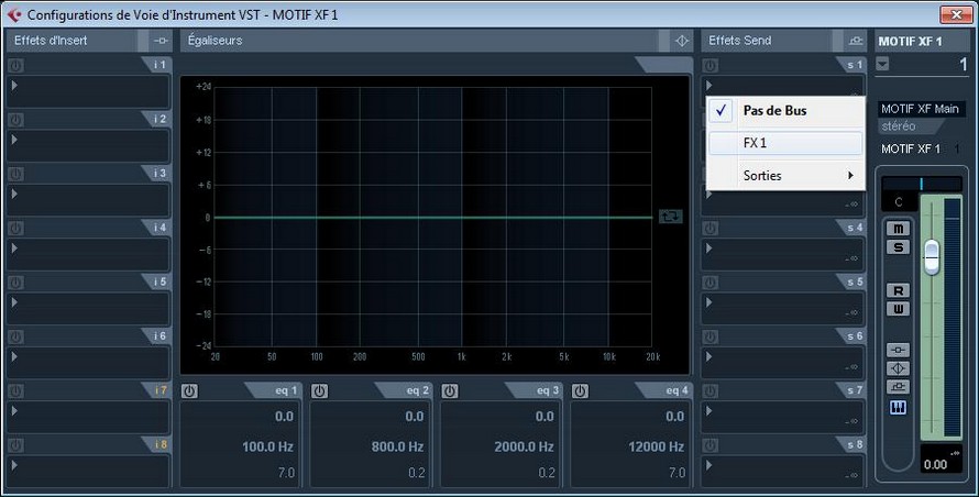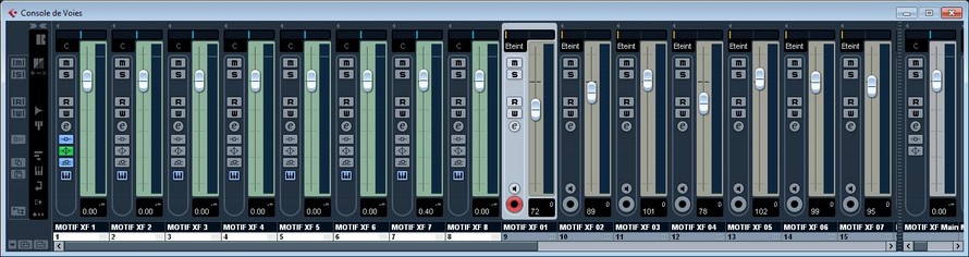 - on peut ainsi tout en étant au stade des donnés midi, appliquer sur les bus du motif XF, les effets de cubase en direct, même avant l'enregistrement des donnés midi, lorsque par exemple vous préparez votre morceau et ainsi enregistrer en une fois un mixage finalisé bénéficiant directement des effets de cubase qui permettent de compenser en grande partie le fait qu'il n'y ait que 8 effets dual insert en simultané dans le mixing du Motif XF.