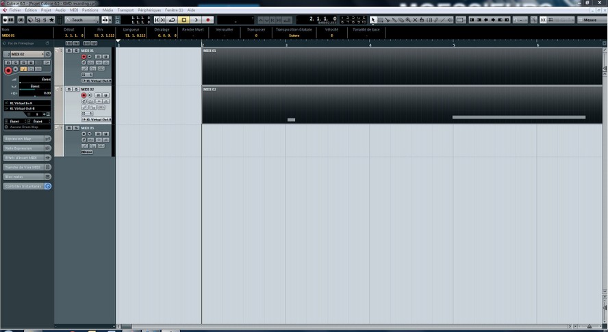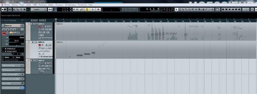 Nous allons maintenant enregistrer les données midi générées par les modules du KMO ainsi que votre jeu main droite.