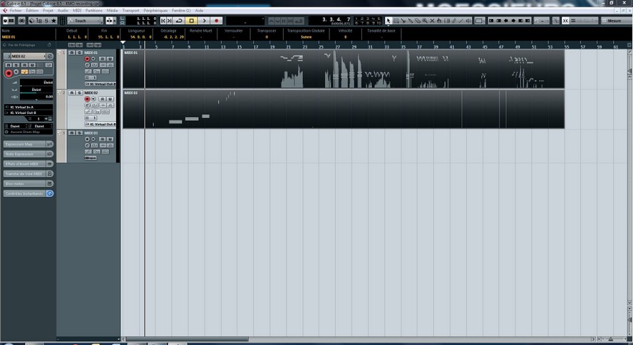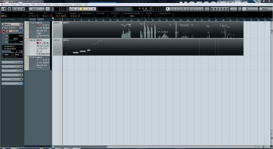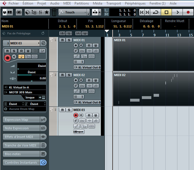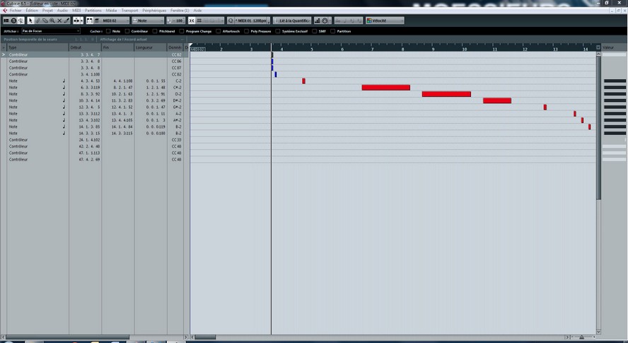 Nous avons lancé l’enregistrement midi depuis Cubase, ensuite lancé la lecture du KMO, à moins d’être un parfait métronome, il est fort probable que nous ne seront pas parfaitement calé au dénut d’une mesure. Si vous avez commencé à jouer depuis le clavier du Motif XF, la première données enregistrée sera une note ou un accord sur la piste 1.