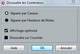 Pour les plus exigeant, ceux par exemple qui souhaitent faire une automation des volumes de chaque piste midi, pour séparer les pistes sur les différents canaux midi sélectionnez la piste 3, faites un clic droit, midiè dissoudre le container, choisissez « Séparer par canaux » et « Affichage optimisé »: